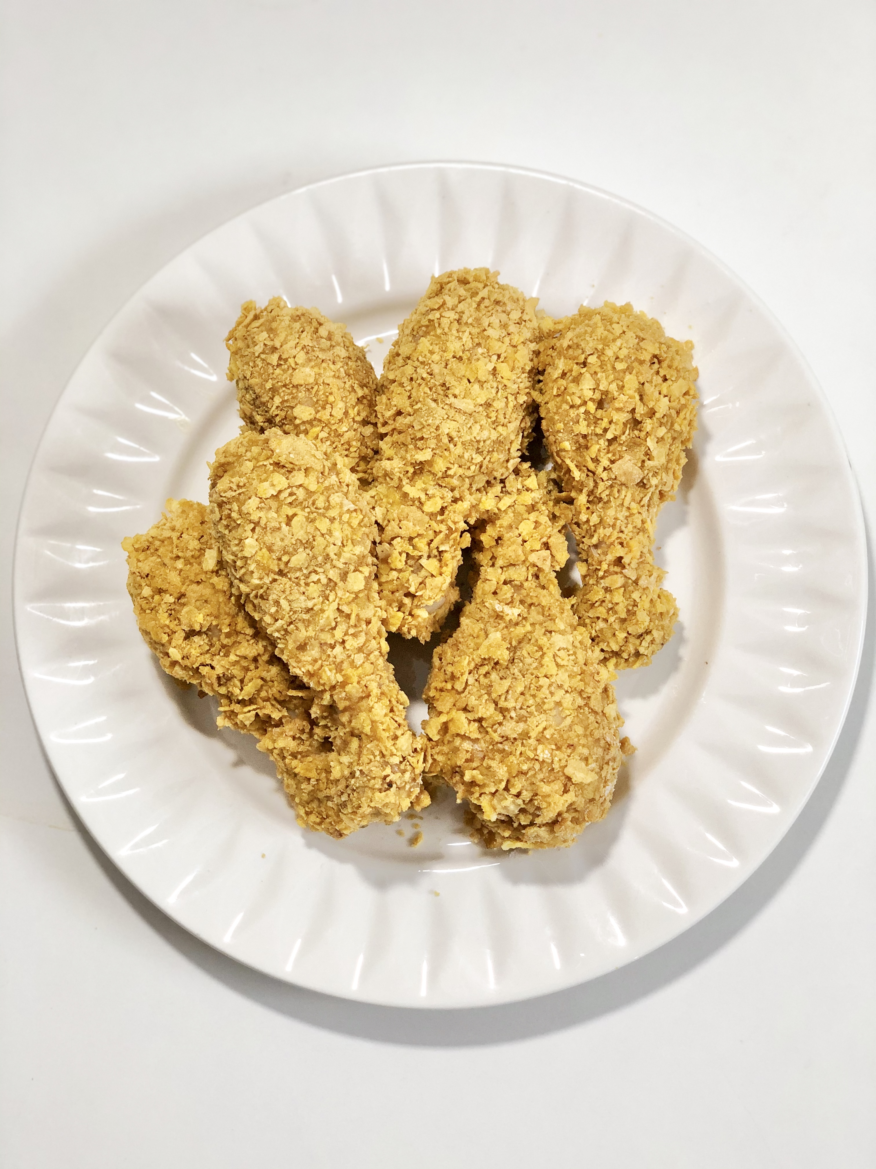 Voici donc ma recette pas chère de poulet bien croustillant façon KFC, que je vous propose : Pilons de poulet panés aux corn flakes. Pour environ 17$ CAD soit 12 € vous avez une dizaine de délicieux pilons de poulet panés !